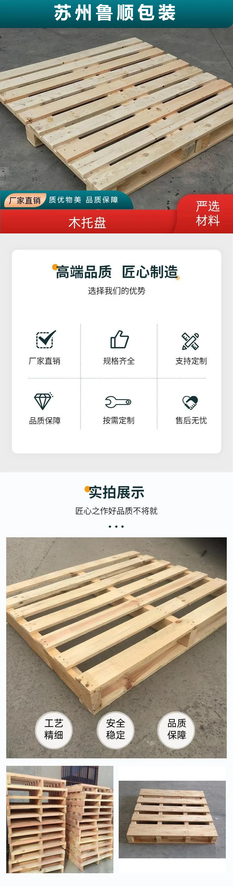 苏州鲁顺包装有限公司是一家专注于苏州木托盘,木箱、仓储物流设备的生产、加工、销售为一体的实体型企业。专业生产各种木托盘,免熏蒸托盘,包装箱,免熏蒸木箱等包装制品,厂家直销,服务至上。已有多年的生产经验,先进的设备,完善的销售服务网络。近年来鲁顺包装一直相伴随着江、沪、浙等多家知名企业创造产业佳绩。为他们提供了优质、及时、有效的包装类产品及服务。面对各企业,我们将会提供包装行业直接、有效、经济、安全、优质的产品。